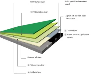 Polyflex pu flooring, often referred to as PU flooring, is a type of synthetic resin flooring known for its durability, versatility, and aesthetic appeal. It is commonly used in commercial, industrial, and sports facilities due to its numerous benefits.The outdoor version of PU flooring features a specialized UV coating and enhanced dimensional stability due to a fiber glass layer.